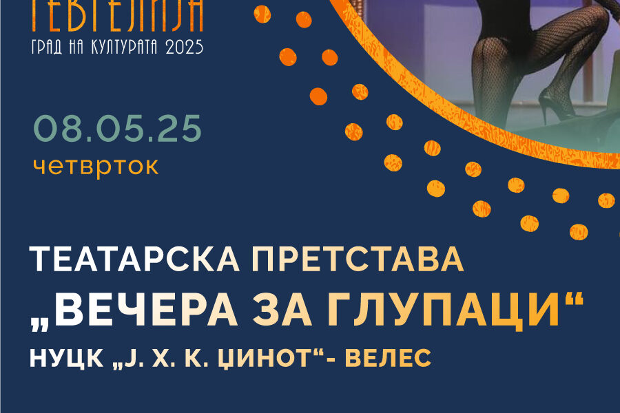 На 8 мај 2025 година (четврток), по повод „Гевгелија град на културата за 2025 година“, во Народниот театар- Гевгелија, ќе гостува НУ Театар „Јордан Хаџи Константинов- Џинот“ со претставата „Вечера за глупаци“. Изведбата ќе започне во 20:00 часот, а влезот е слободен.