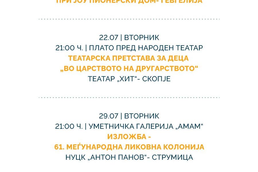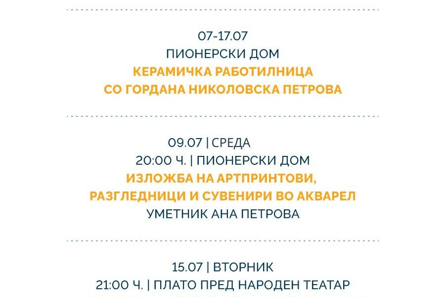 1 – 3 јули / вторник – четврток / Пионерски дом